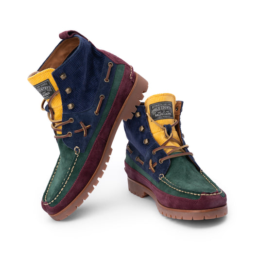 Styled with colorblocked panels of suede and corduroy, these utilitarian-inspired boots from Polo Ralph Lauren are designed with rawhide lacing inspired by classic boat shoes. They're finished with a hand-stitched...